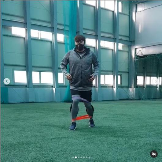 류현진이 7일 제주도 서귀포시 강창학구장 실내 훈련장에서 하체 훈련을 하고 있다. 에이스펙코퍼레이션 인스타그램 캡처 |