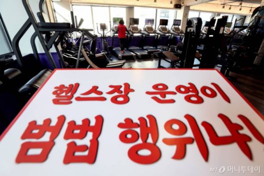 [서울=뉴시스]김병문 기자 = 정부가 내일부터 이용대상 아동·학생 대상, 동시간대 9명 제한을 조건으로 실내 체육시설 운영을 허용한다고 발표한 7일 오후 서울 시내의 한 헬스장이 오픈시위를 하고 있다. 헬스장 관계자는 "헬스장 이용객의 대부분이 성인"이라며 반발했다. 2021.01.07. dadazon@newsis.com |