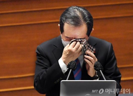 정 총리는 답변 도중 울먹이며 말을 잇지 못하는 모습을 보이기도 했다. 정 총리는 "대통령께서도 영업하지 못하면서 임대료를 부담해야 하는 자영업자의 눈물을 어떻게 닦아줄 것인가"라고 언급하면서 말을 끝맺지 못하고 울음을 참은 뒤 "정말 힘든 일이다"고 답했다. 이후 질의 도중 손수건을 꺼내 눈물을 닦았다.