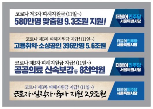 자료: 더불어민주당 3자 재난지원금 홍보 문구들 |