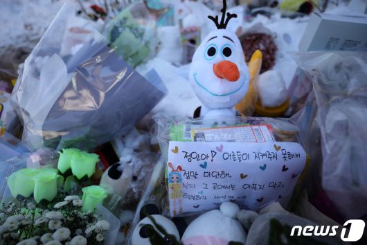 7일 오후 경기 양평 하이패밀리 안데르센 공원묘원에 양부모의 학대로 숨진 16개월 영아 정인(입양 전 이름)양을 추모하며 시민들이 갖다 놓은 물품들이 놓여있다. 2021.1.7/뉴스1 © News1 이승배 기자 |