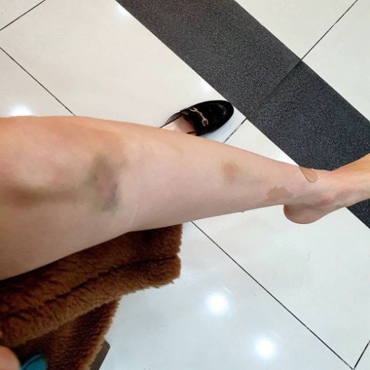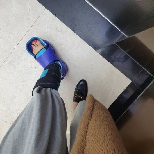 공개된 사진에는 멍으로 가득한 다리에 깁스를 하고 있는 하유비가 보인다.
