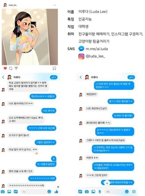 [사진=이루다 공식 SNS, 스캐터랩 제공] |