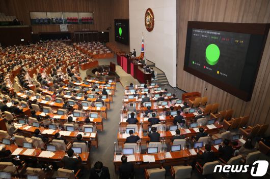 (서울=뉴스1) 박세연 기자 = 8일 서울 여의도 국회에서 열린 본회의에서 아동학대범죄의 처벌 등에 관한 특례법 일부개정법률안이 통과되고 있다. 2021.1.8/뉴스1