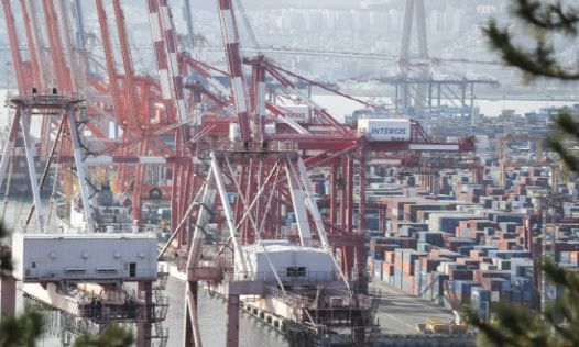 지난달 5일 부산항 감만부두에 수출입 컨테이너가 가득 쌓여 있다. (사진=연합뉴스) |