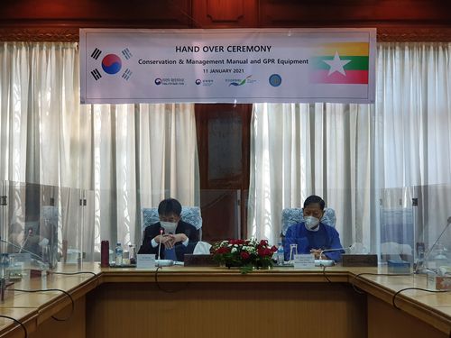 (서울=연합뉴스) 임동근 기자 = 문화재청은 11일 오전 10시(현지 시간) 미얀마 바간고고학박물관에서 우리나라 벽화 보존관리 경험을 적용해 제작한 벽화 안내서 4종에 대한 전달식을 개최했다고 밝혔다.