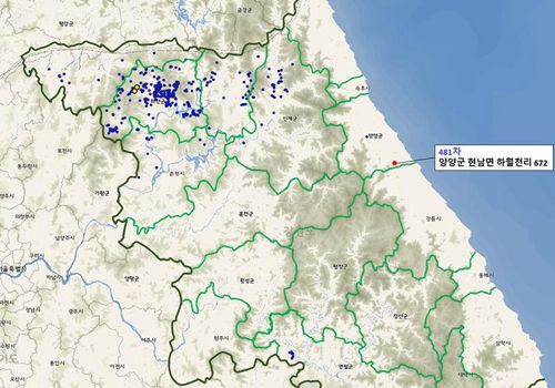 지난 4일 양양에서 처음 확인된 ASF 감염 멧돼지 폐사체 발견 지점보다도 14.6㎞ 남쪽으로, 인근의 하천은 동해(바다)와 연결돼 있다.