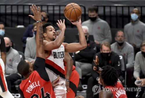 (서울=연합뉴스) 최송아 기자 = 미국프로농구(NBA) 포틀랜드 트레일블레이저스가 C.J. 매컬럼의 결승포에 힘입어 토론토 랩터스를 한 점 차 역전승을 거두고 3연승을 달렸다.