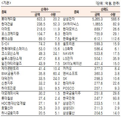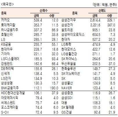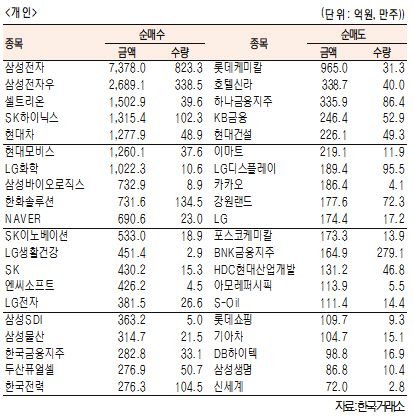 [표]유가증권 기관·외국인·개인 순매수·도 상위종목(1월 12일-최종치)