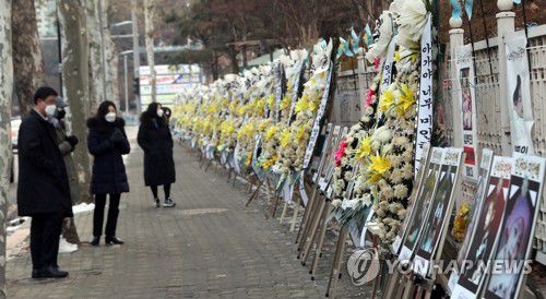 서울 남부지검 앞 '정인 양 애도 근조화환' |