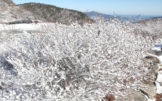 전국적으로 한파가 몰아친 지난해 12월 30일 오전 부산진구 백양산 애진봉 인근에 눈이 쌓여 있다. 중앙포토 |