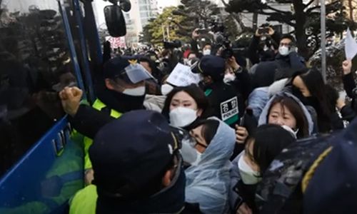 16개월 된 입양 딸 정인 양을 학대해 숨지게 한 혐의를 받는 양부모의 첫 재판이 열린 13일 서울남부지법앞에서 분노한 시민들이 양부모 장 모, 안 모 씨에 엄벌을 촉구하고 있다. 한편 재판을 마친 양부모들은 호송차와 개인차량으로 시민들의 항의속에 청사를 빠져 나갔다. 남제현 선임기자 ⓒ 세상을 보는 눈, 세계일보