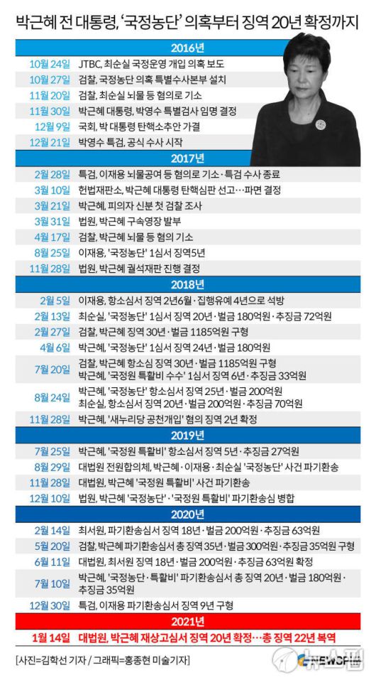 ▲1월 14일 대법원, 박근혜 재상고심서 징역 20년 확정…총 형량 징역 22년