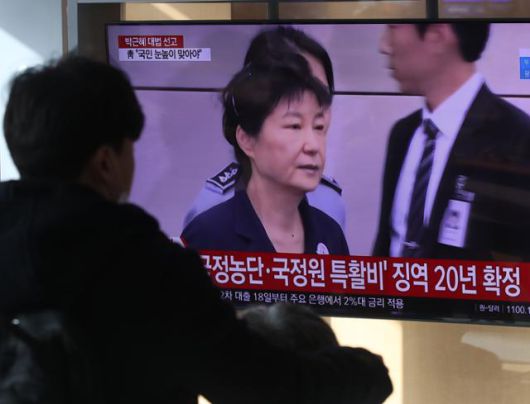14일 오전 서울역 대합실에서 시민들이 박근혜 전 대통령에 대한징역 20년을 확정한 대법원 재상고심 선고 공판 TV방송을 시청하고 있다. 뉴시스 |