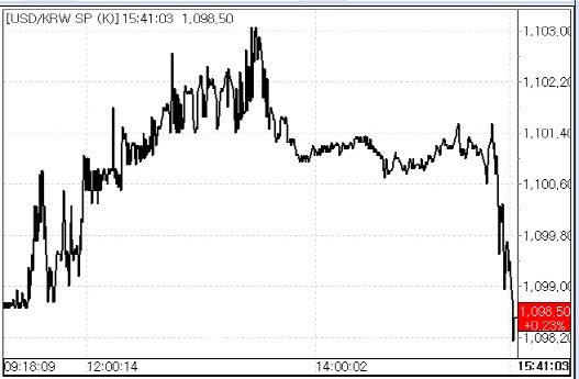이날 서울외국환중개와 한국자금중개에서 거래된 거래대금은 96억7700만달러로 집계됐다.