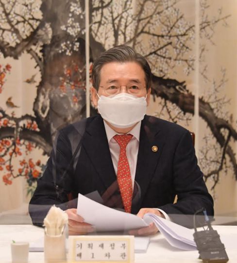 김용범 기획재정부 1차관이 1월 15일 서울 광화문 정부서울청사에서 열린 '제2차 혁신성장 전략점검회의 겸 정책점검회의 겸 한국판뉴딜 점검 TF 회의'를 주재, 모두발언을 하고 있다./기재부 |