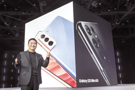 한국시간 15일 열린 ‘삼성 갤럭시 언팩 2021’에서 갤럭시 S21 시리즈를 소개하고 있는 노태문 삼성전자 무선사업부장(사장). [삼성전자 제공] |