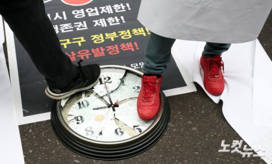 CBS노컷뉴스 황진환 기자 음식점·호프점연합회 관계자들이 15일 오후 서울 여의도 더불어민주당사 앞에서 ‘생존권 보장 촉구’ 집회를 갖고 있다.저작권자 © CBS 노컷뉴스 무단전재 및 재배포 금지