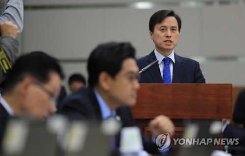 2017년 10월 23일 서울 서초구 서울고검에서 열린 국회 법제사법위원회의 서울고등검찰청ㆍ서울중앙지방검찰청 등에 대한 국정감사에서 당시 서울고검장이었던 조은석 감사위원이 업무보고를 하고 있다. [연합뉴스 자료사진] |