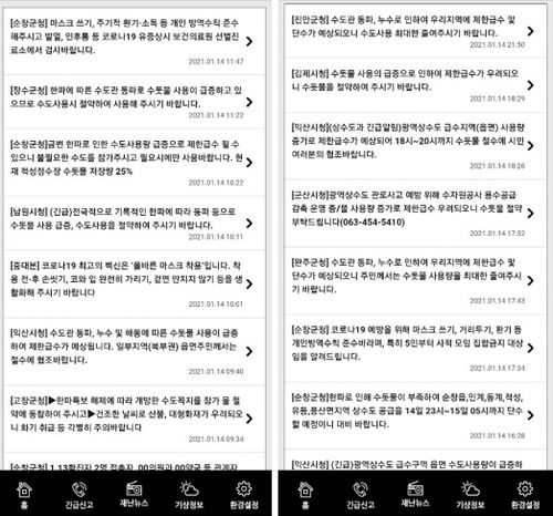 장수군, 임실군, 부안군도 지난 14일과 15일 절수를 안내하는 재난문자를 발송했다.