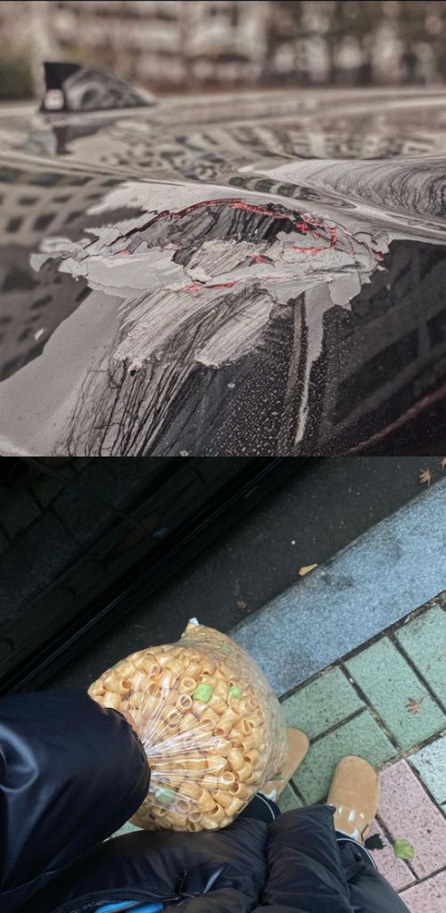 함께 공개된 사진 속에는 앞부분이 박살난 자동차의 모습이 담겨져 있어 사고 당시의 충격을 느끼게 한다. 김준희가 언급한 뻥튀기의 모습도 보인다.