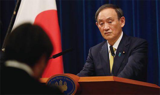 지난해 12월 4일 스가 일본 총리가 기자회견에서 성공적인 올림픽 개최를 다짐하고 있다. photo 뉴시스 |