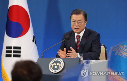 질문에 답하는 문재인 대통령 |