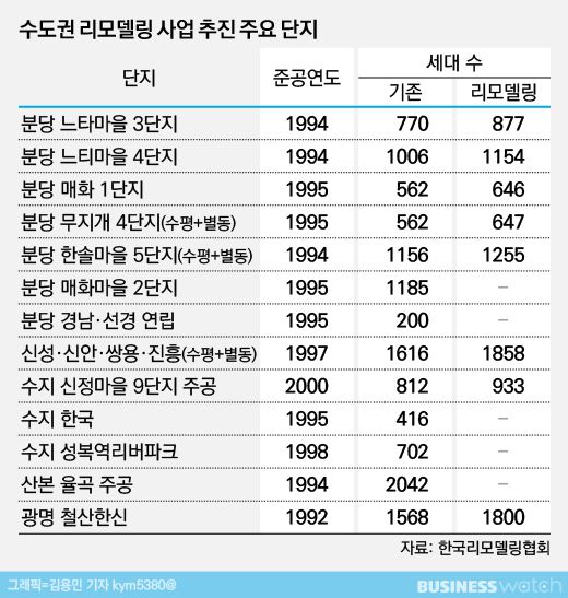 1기 신도시나 용인 등 수도권 단지들의 경우 서울 도심에 위치한 아파트에 비해 용적률이 낮다는 점도 리모델링 사업에 유리하다. 2014년 법 개정 이후 지금까지 리모델링 사업을 완료한 단지가 나오지 않은 것은 수직증축 시 안전문제에 대한 논란을 해결하지 못한 것이 가장 큰 원인이다.