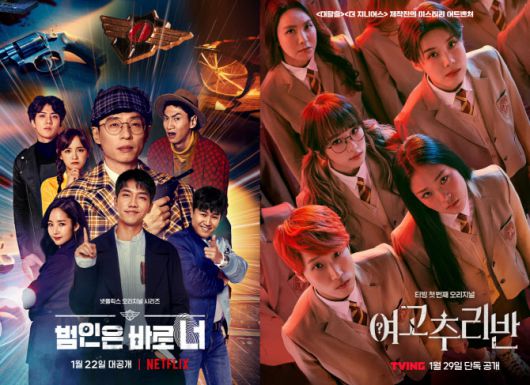 [이데일리 스타in 김보영 기자] 국내 OTT(온라인 동영상 스트리밍 서비스) 티빙과 글로벌 OTT ‘넷플릭스’가 추리 예능을 첫 타자로 본격 오리지널 콘텐츠 경쟁을 벌인다. 넷플릭스는 ‘런닝맨’ 출신 조효진 PD와 ‘허당 탐정’ 유재석과 이승기, 엑소 세훈, 박민영, 김세정 등 톱스타 군단으로 이미 탄탄한 팬층을 확보한 ‘범인은 바로 너!’(Busted,이하 범바너) 시즌 3를 공개한다. 티빙 역시 추리 예능계의 히트메이커 정종연 PD와 ‘추리의 여왕’ 박지윤을 필두로 내세운 첫 오리지널 야심작 ‘여고추리반’을 비슷한 시기 공개함으로써 정면 승부를 펼칠 전망이다. ‘추리’란 소재만 같을 뿐 전혀 다른 매력을 지닌 두 프로그램 중 어떤 쪽이 웃게 될지 귀추가 주목된다.