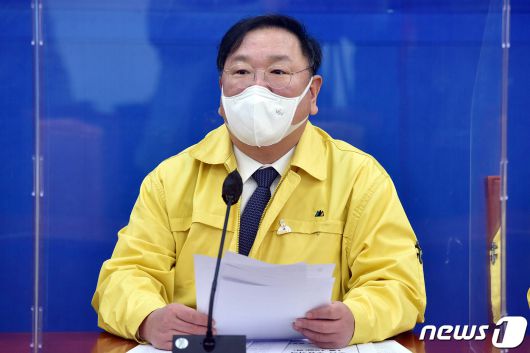 김태년 더불어민주당 원내대표가 19일 오전 서울 여의도 국회에서 열린 원내대책회의에서 모두발언을 하고 있다. 2021.1.19/뉴스1 © News1 성동훈 기자 |