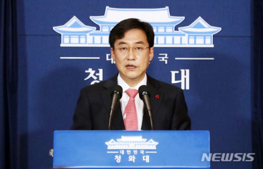 [서울=뉴시스]박영태 기자 = 강민석 청와대 대변인이 14일 청와대 춘추관에서 박근혜 전 대통령의 사법부 판결과 관련한 브리핑을 하고 있다. 2021.01.14. since1999@newsis.com |
