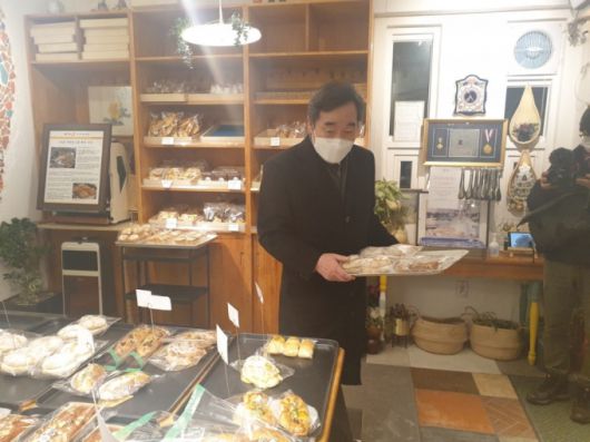 이낙연 더불어민주당 대표가 '한 끼 포장'을 제안하며 동네 빵집을 찾은 사진을 공개했다.
