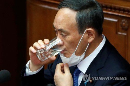 '속 타네' 국회 연설 도중 물 마시는 스가 일본 총리 |