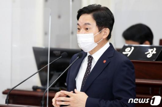 원희룡 제주도지사가 지난해 11월 18일 제주도의회 본회의장에서 진행된 도정질문에서 제주도의회 의원들의 질문에 답변하고 있다. /사진=뉴스1 |