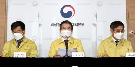 김용범 기획재정부 1차관이 20일 정부서울청사에서 열린 제27차 비상경제 중앙대책본부 회의의 '설 민생안정대책'을 발표하고 있다. 김 차관은 '자영업 손실보상법' 관련 질문이 나오자 "해외 사례를 일차적으로 살펴본 바에 따르면 법제화한 나라는 찾기가 쉽지 않다"고 답했다. [연합] |