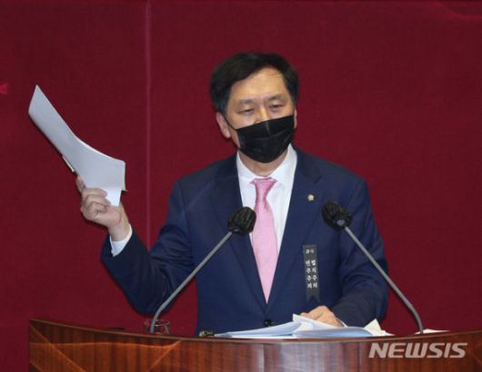 [서울=뉴시스] 김진아 기자 = 김기현 국민의힘 의원이 지난해 12월9일 밤 서울 여의도 국회에서 열린 본회의에서 고위공직자범죄수사처(공수처)법 개정안에 대한 무제한 토론(필리버스터)를 하고 있다. (공동취재사진) 2020.12.10. photo@newsis.com /사진=뉴시스 |