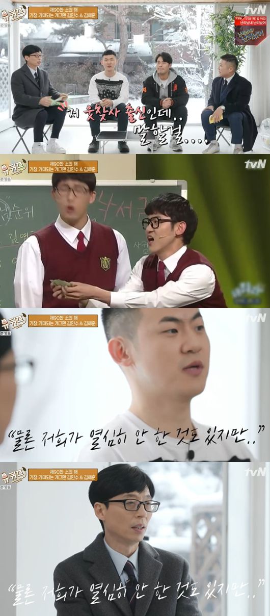 20일 방송된 tvN 예능프로그램 '유 퀴즈 온 더 블럭'에서는 개그맨 김민수와 김해준이 출연했다.