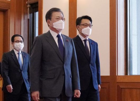 강민석 청와대 대변인은 21일 춘추관 브리핑에서 "문재인 대통령은 김진욱 공수처장과의 환담에서 '엄중한 시기에 많은 사람의 관심이 집중된 아주 부담스러운 직책을 피하지 않고 적극적으로 수용해 주신 데 대해 경의를 표한다'고 밝혔다"고 전했다.