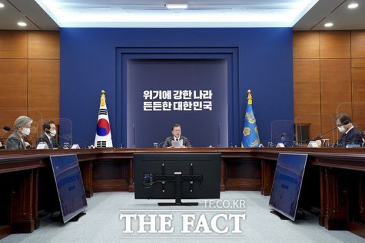 [더팩트ㅣ청와대=허주열 기자] 문재인 대통령이 21일 국가안전보장회의(NSC) 전체회의 및 부처 업무보고를 받는 자리에서 "한반도 평화 프로세스는 선택이 아니라 반드시 가야만 하는 길"이라고 강조했다. 문 대통령이 NSC 전체회의를 직접 주재한 것은 2019년 3월 이후 22개월 만이다.