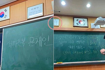 앞서 한 온라인 커뮤니티에는 ‘경기도 모 고등학교 근황’이라는 제목으로 문 대통령을 비방하는 내용의 칠판 사진이 올라왔다.