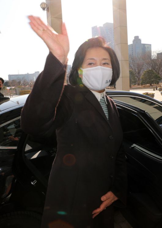 사의를 표명한 박영선 전 중소벤처기업부 장관이 지난 20일 오후 대전시 서구 둔산동 정부대전청사를 떠나며 직원들에게 인사하고 있다. (사진=연합뉴스) |