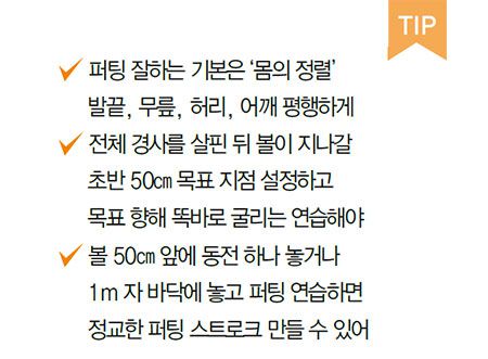 이소영은 퍼팅을 잘할 수 있는 가장 핵심적인 포인트로 “정확한 어드레스와 처음 50㎝를 정확하게 원하는 방향으로 보내는 것”이라고 강조한 뒤 “퍼터에 볼이 맞고 구르는 초반 50㎝를 똑바로 보낸다면 어떤 상황에서도 정교하고 자신 있게 퍼팅을 할 수 있다”고 말합니다.