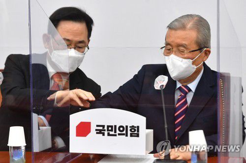 국민의힘 주호영 원내대표·김종인 비상대책위원장 |