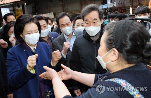 남대문시장 방문한 이낙연과 우상호-박영선 |