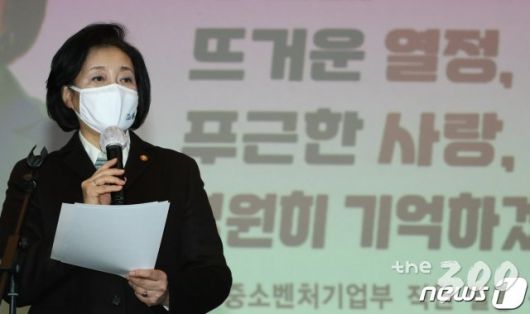 (대전=뉴스1) 김기태 기자 = 박영선 중소벤처기업부 장관이 20일 오후 정부대전청사에서 직원과의 대화에서 인사말을 하고 있다. 박 장관은 서울시장 보궐선거 출마를 위해 사의를 표명한 것으로 알려졌다. 2021.1.20/뉴스1 |