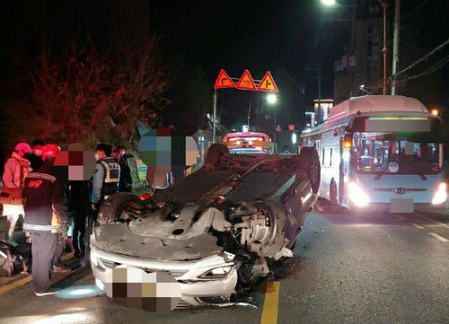 (부산=연합뉴스) 김선호 기자 = 개인택시 기사가 비번 날 음주상태로 택시를 운전하다가 전복 사고를 내 2명이 다쳤다.