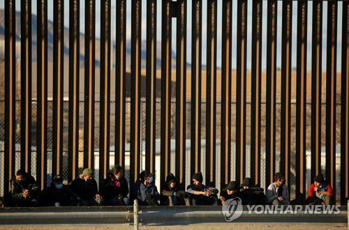 미국·멕시코 국경 장벽 앞의 중미 이민자들 |
