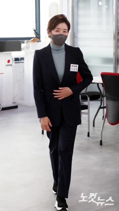 CBS노컷뉴스 황진환 기자 나경원 전 의원이 24일 오후 서울 여의도 국민의힘 중앙당사에서 열린 서울시장 보궐선거 공천 신청자 면접에 입장하고 있다.저작권자 © CBS 노컷뉴스 무단전재 및 재배포 금지
