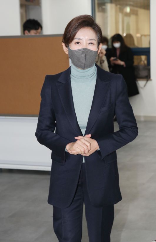 국민의힘 나경원 전 의원이 24일 오후 서울 여의도 국민의힘 중앙당사에서 열린 서울시장 보궐선거 공천 신청자 면접에 참가하기 위해 대기실로 향하고 있다. 연합뉴스 |