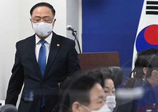 홍남기 경제부총리 겸 기획재정부 장관이 24일 저녁 서울 삼청동 총리공관에서 열린 고위 당정청 회의에 불참했다. 이날 더불어민주당과 정부, 청와대는 코로나로 피해를 본 자영업자를 보상하기 위한 방안을 논의했다. 민주당은 자영업자에 대한 피해지원 제도화를 추진 중이다. 홍 부총리는 이날 감기 몸살을 이유로 불참했지만, 정치권에선 최근 홍 부총리가 여권으로부터 질타를 받은 상황과 무관치 않다는 얘기가 나온다.